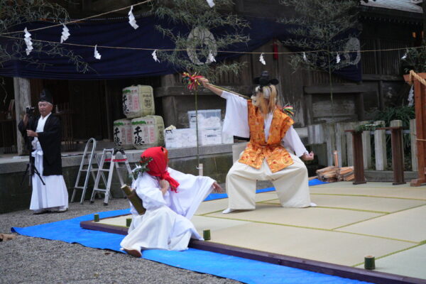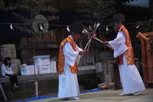 神楽を舞うのは、延岡神楽社の若手の舞い手。