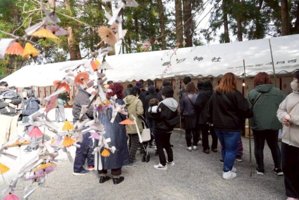 本年は林野火災が非常に多いためどんど焼きの斎行も危ぶまれたのですが、消防署のご理解と総代や地元消防団の方々のご尽力により、無事に斎行することができました。